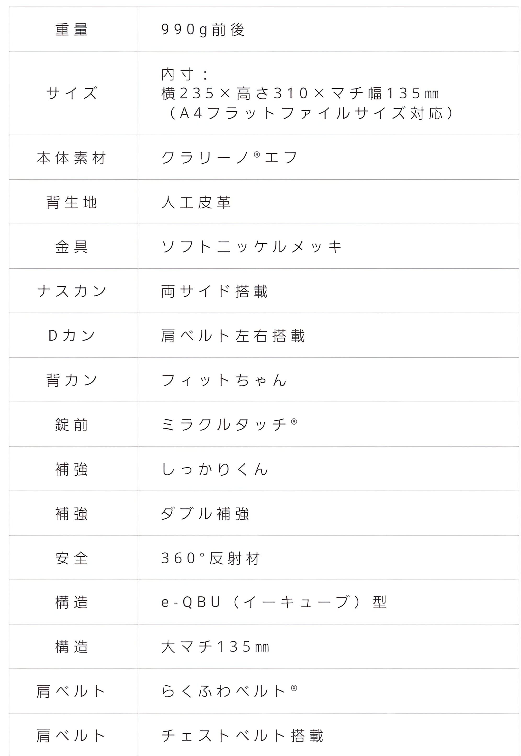 素材: 本体/クラリーノ®エフ、背中/人工皮革
