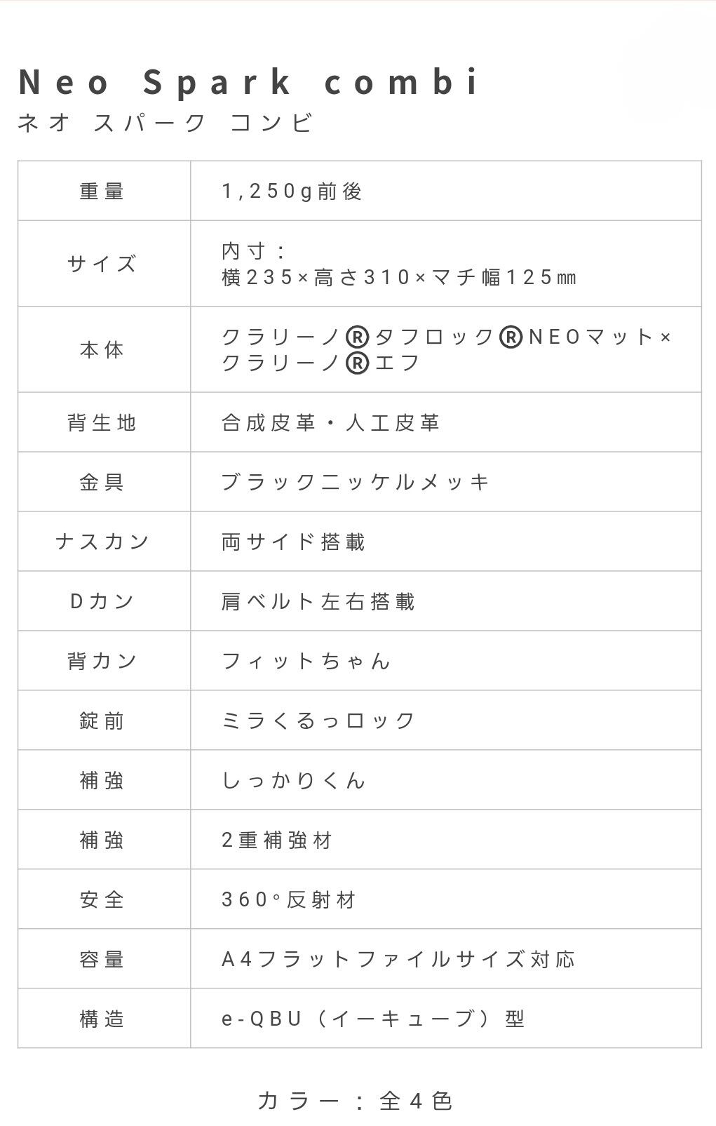 素材: クラリーノ®タフロック®NEOマット(キズに強く丈夫な軽量素材)